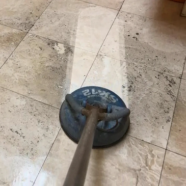A lot of garage floors are epoxy coated and need a deep cleaning. We use either a degreaser or a 12 Ph cleaner. Then agitate and soft water extraction.